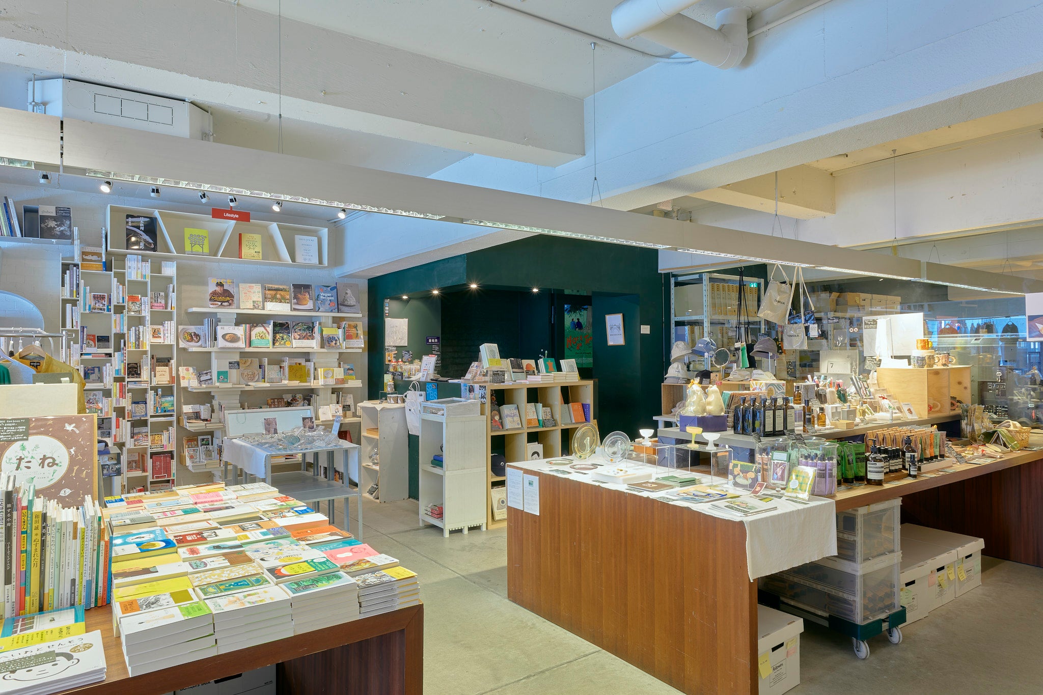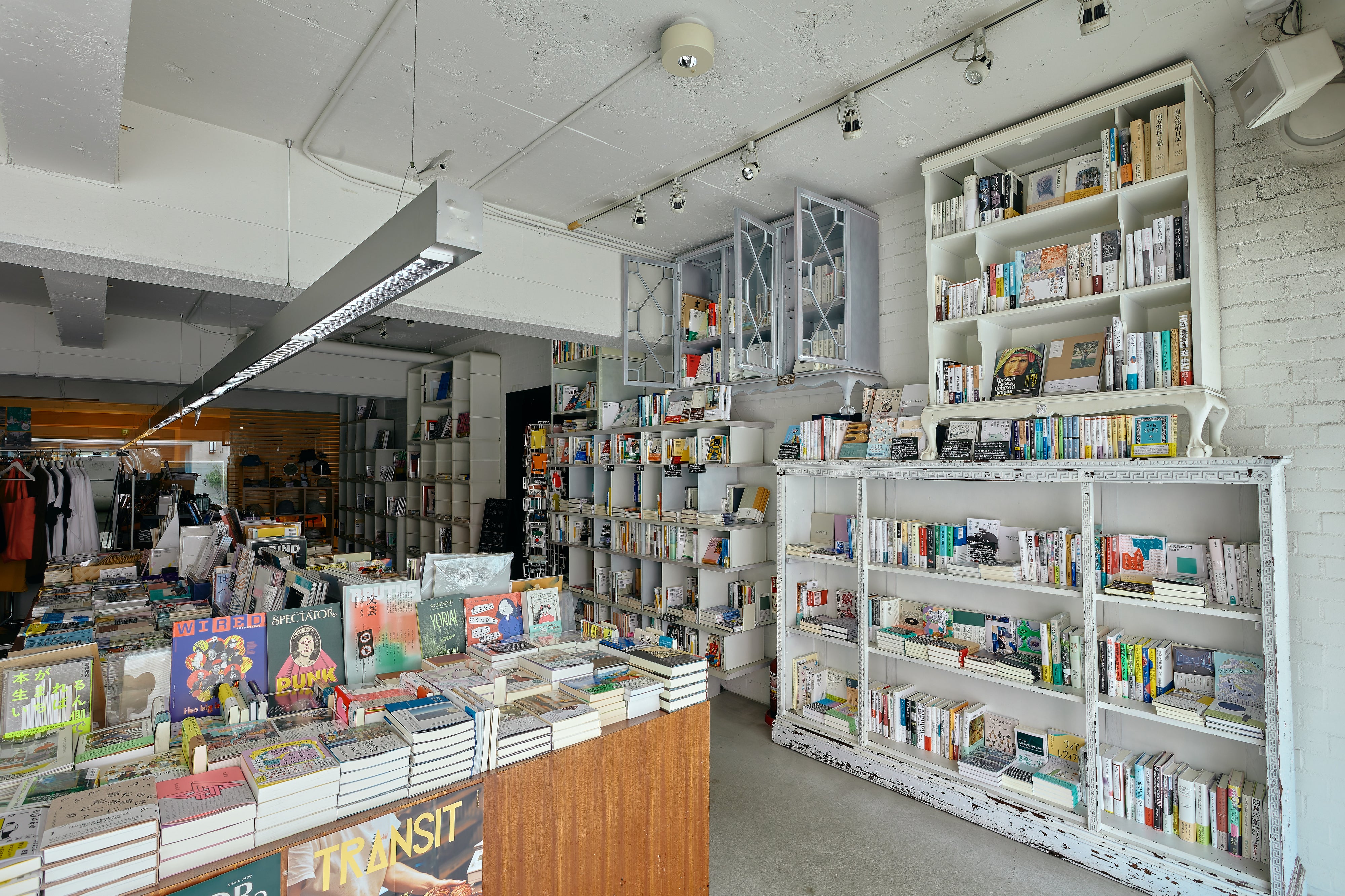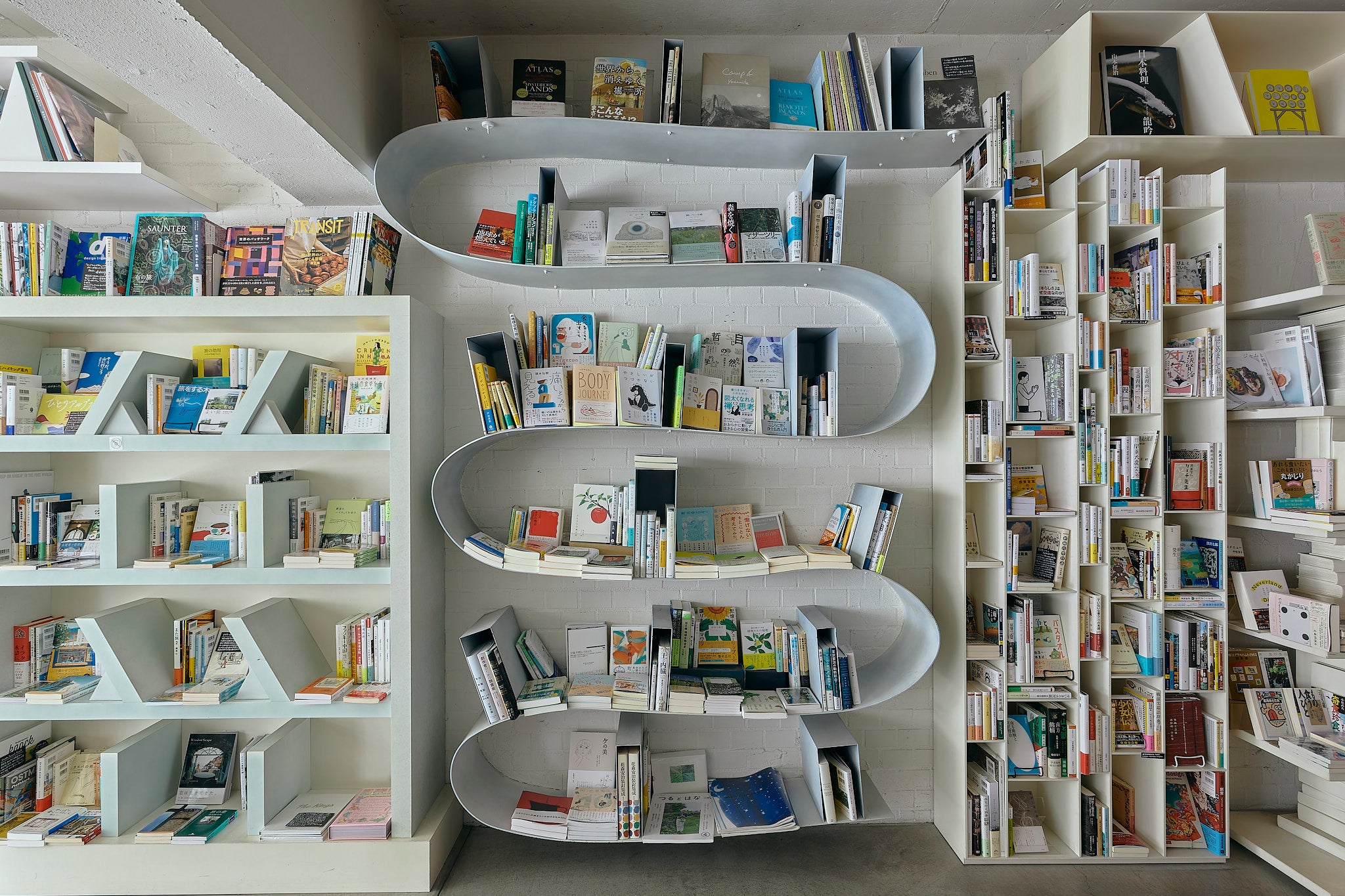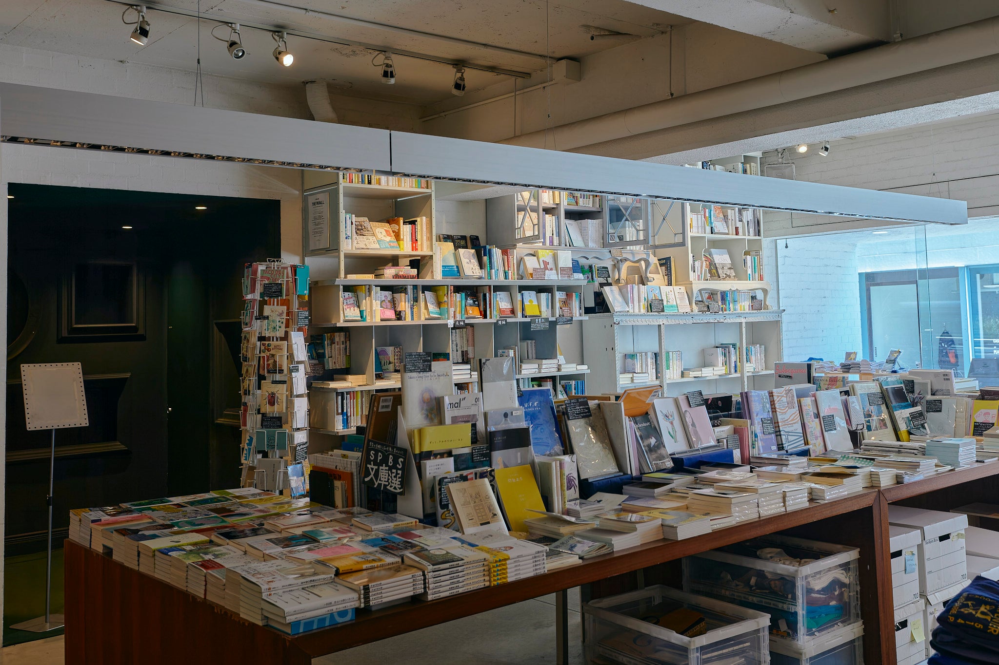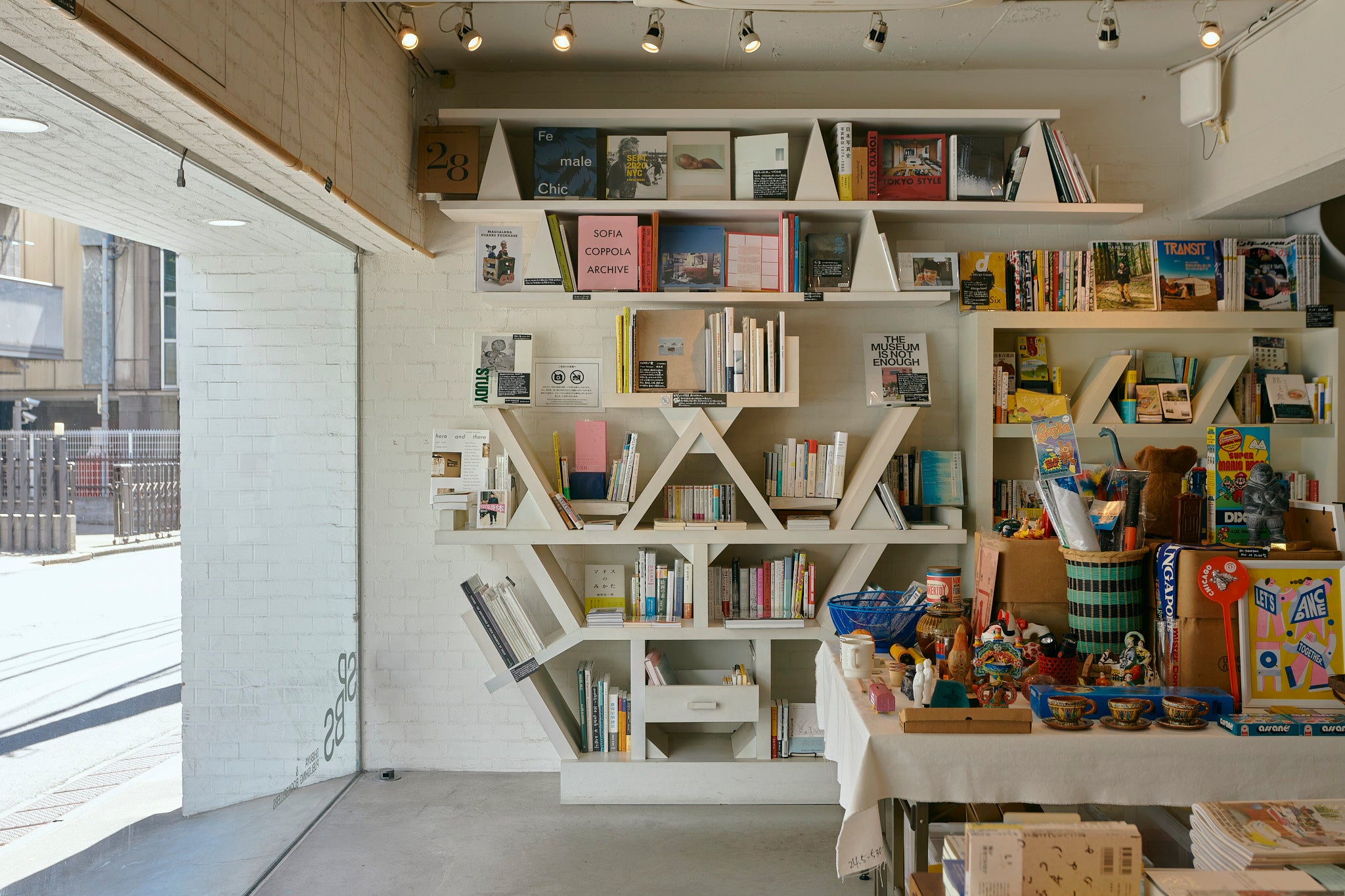 SPBS本店は白い壁と珍しい形の本棚が並ぶお店です。日中は自然光が差し込みます。本や雑貨のある空間でのファッション誌の撮影や、テレビドラマ・PVの収録など、さまざまな用途にご利用いただけます。