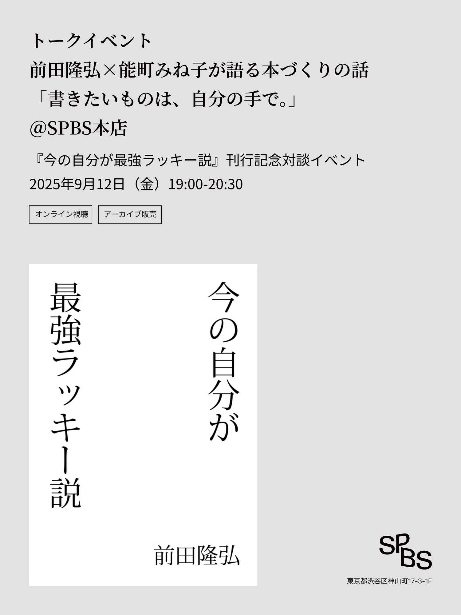 SPBS本店では、本書の刊行を記念して、前田さんと親交が深いエッセイスト・イラストレーターの能町みね子さんをゲストにお迎えし、対談イベントを開催します。