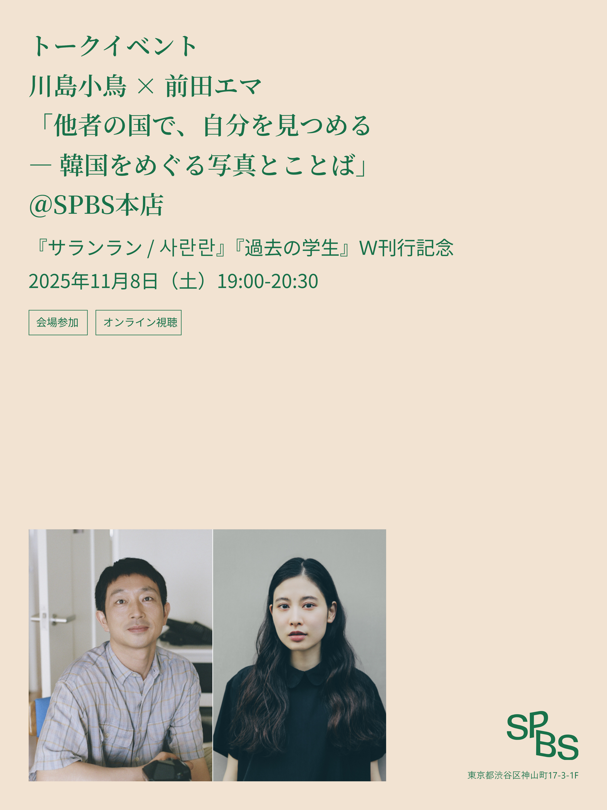 ■ 会場:SPBS本店(東京都渋谷区神山町17-3テラス神山1F [MAP])/オンライン